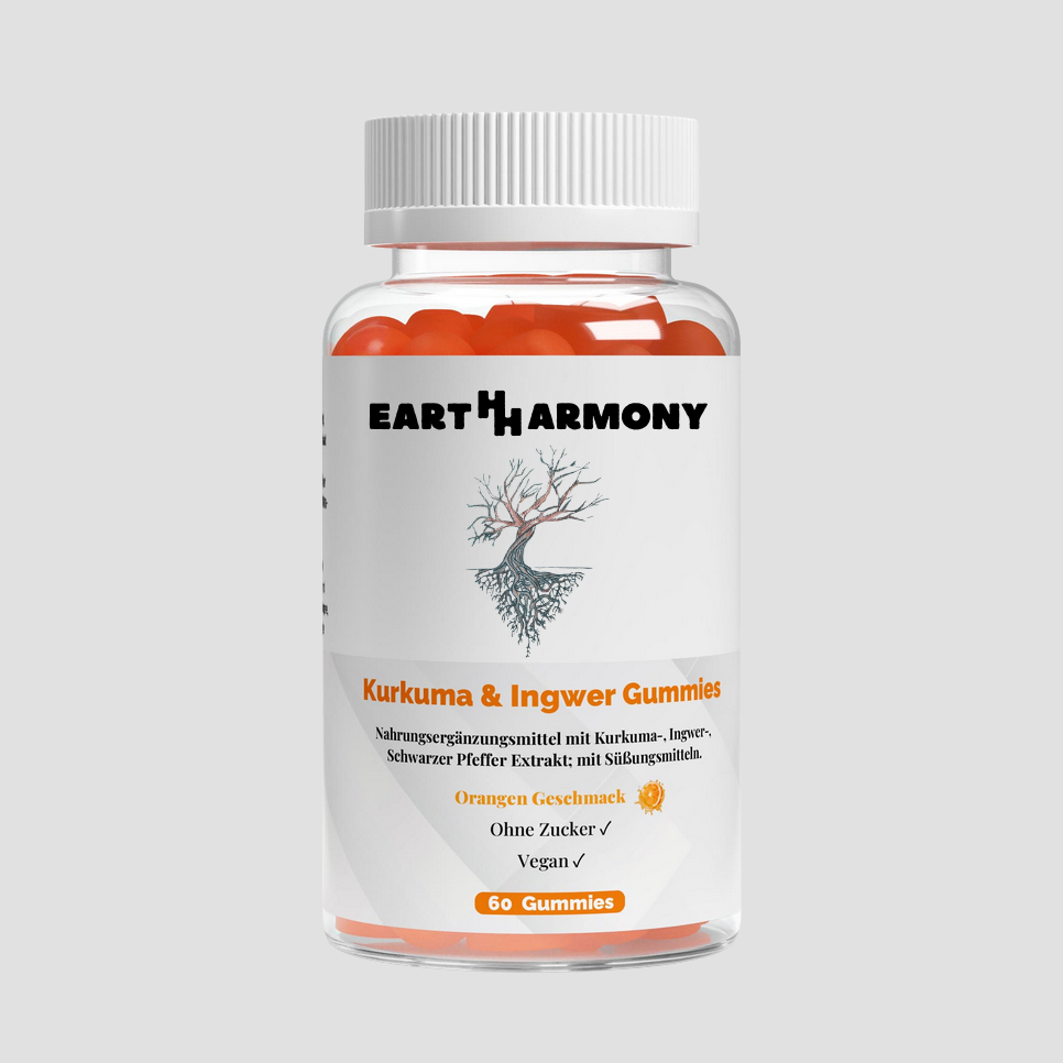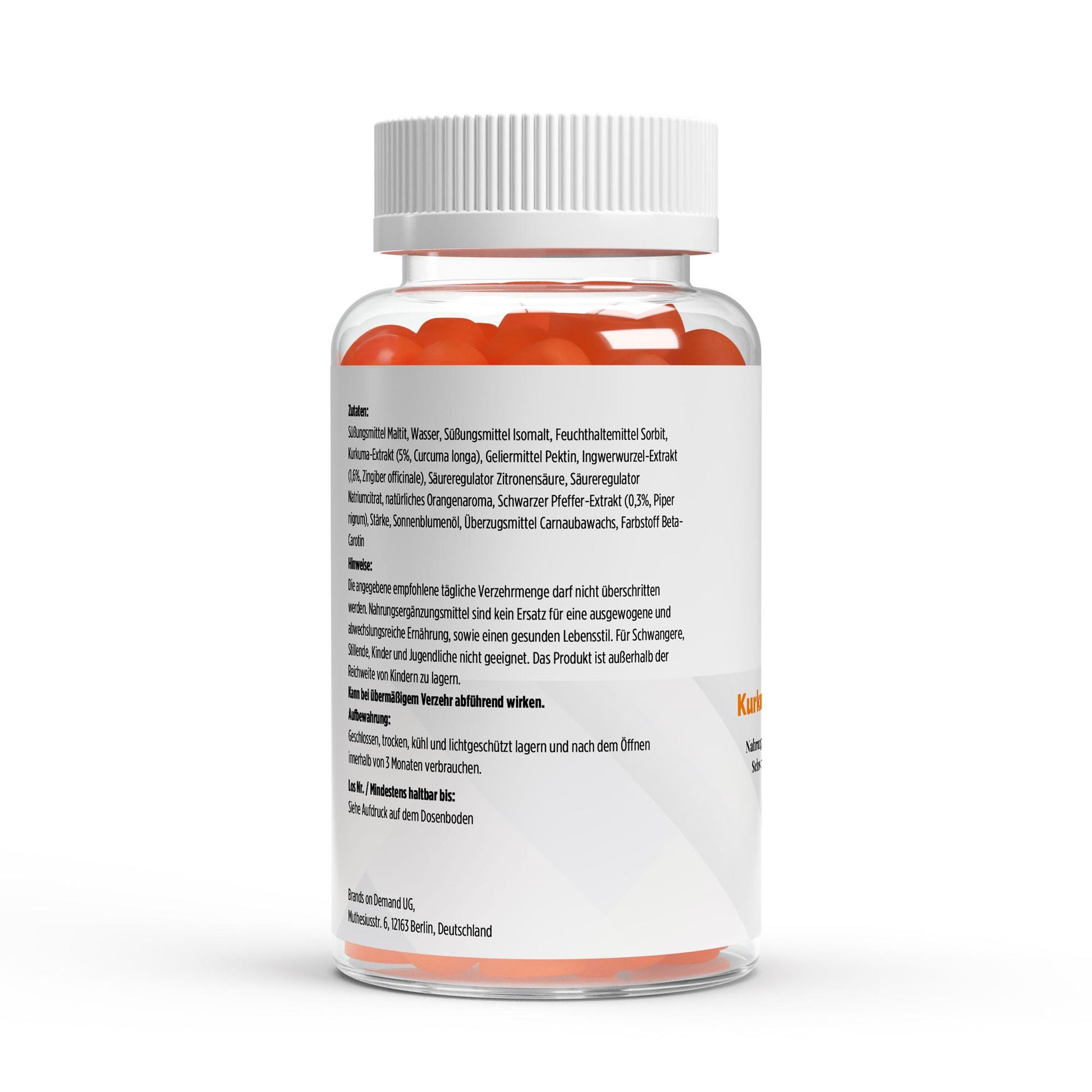 Kurkuma Gummies mit Ingwer und schwarzem Pfeffer. Zuckerfrei, vegan. 60 Gummies für 1 Monat.