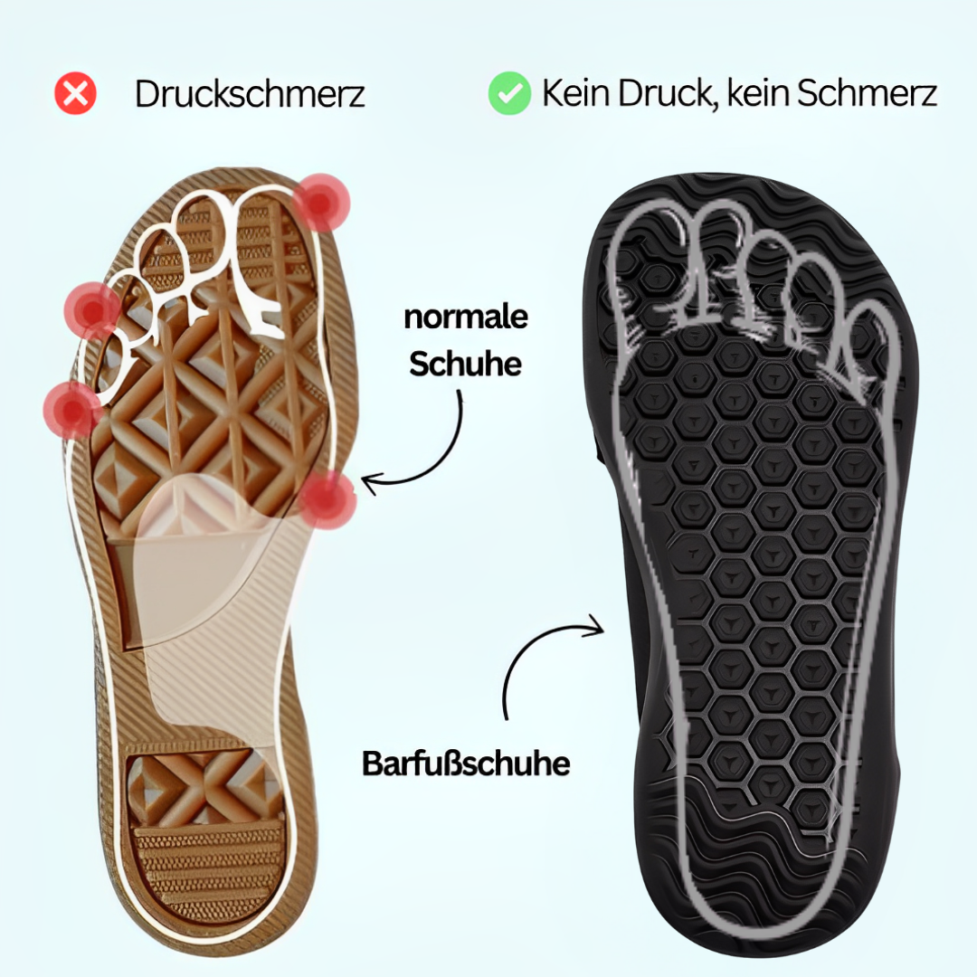 Barfußschuhe schenken deinen Füßen Raum zur natürlichen Entfaltung. Im direkten Vergleich wird klar: Während herkömmliche Schuhe oft einengen, fördern Barfußschuhe gesunde Bewegungsfreiheit.
