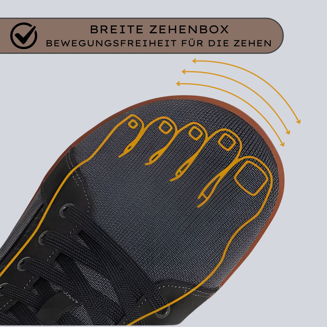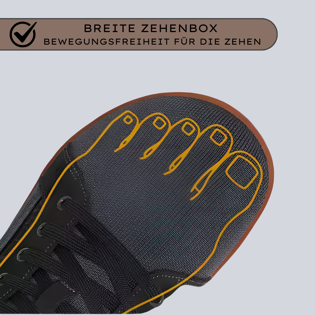 Mehr als nur ein Schuh: Die breite Zehenbox erlaubt natürliche Zehenbewegung, das atmungsaktive Material sorgt für Frische, und das geringe Gewicht schenkt dir Leichtigkeit beim Gehen – fast wie barfuß.